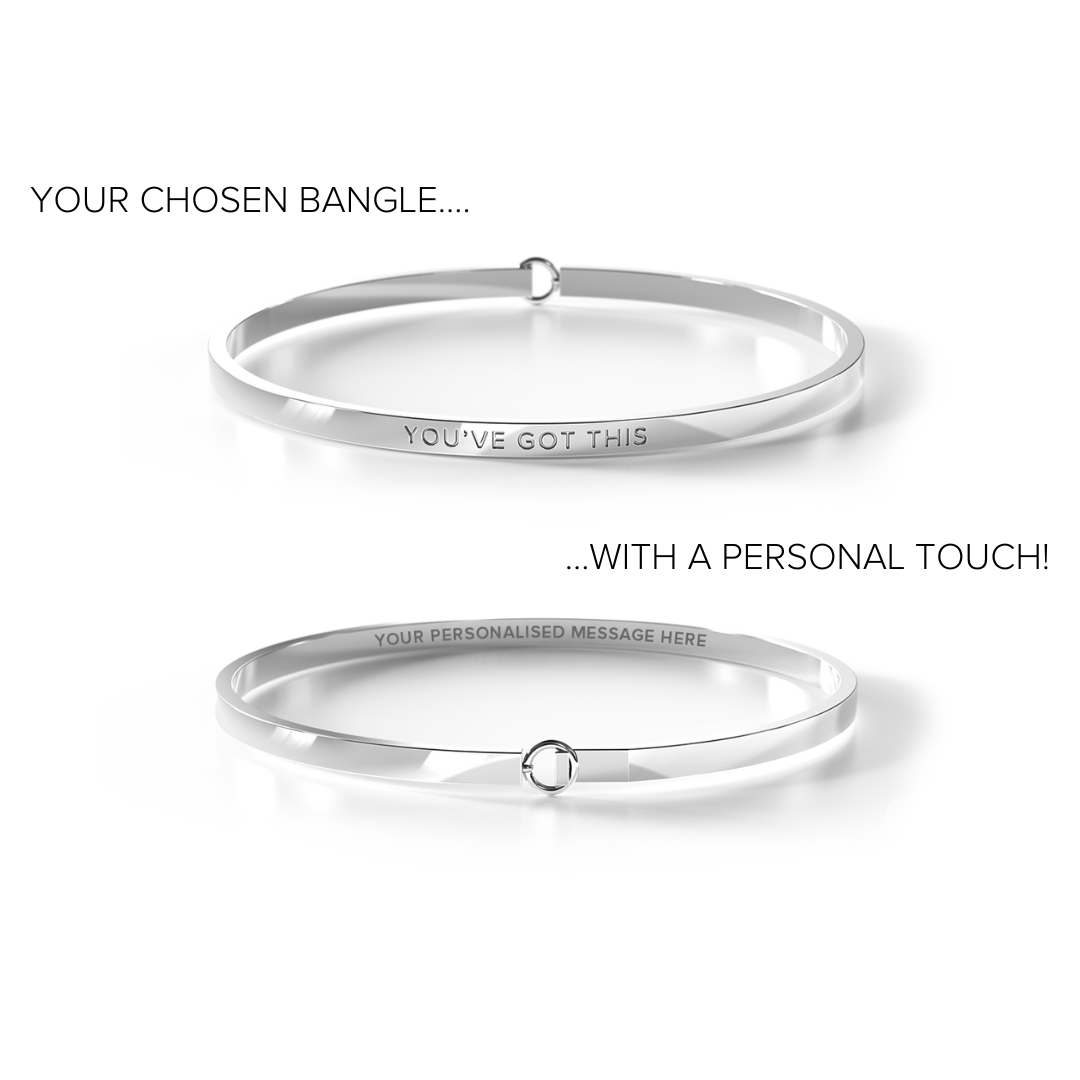 You now have the option to add a personal laser engraved message to the inside of clasp bangles.