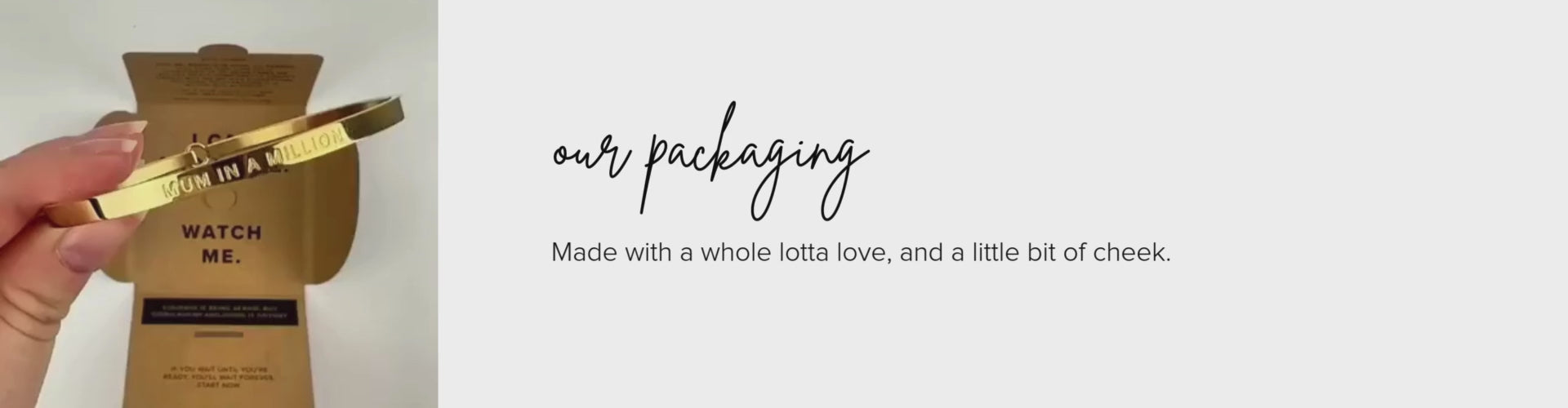 All of our bangles and rings are lovingly packed in our 100% recyclable cardboard boxes, complete with inspiring and sometimes cheeky sayings.